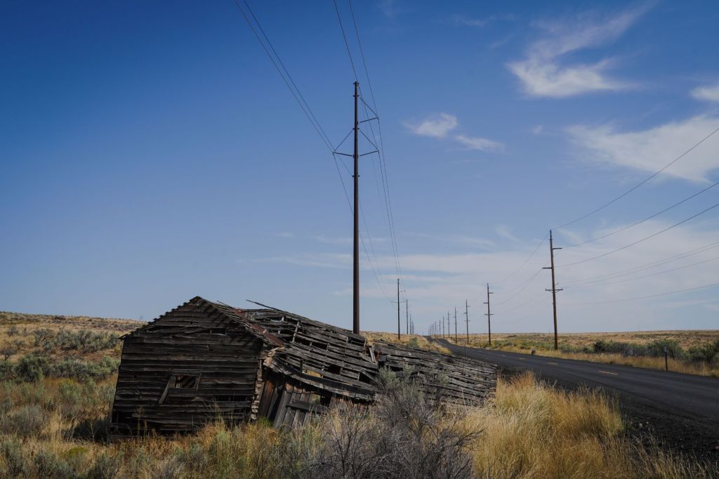 Bakeoven road truly lives up to its name during this time of year. Essentially a tree-free landscape covered with dried up grasses, sage brush, and various weeds. The occasional weathered building and fence accentuated the feel of this dry and often sweltering landscape.  Perhaps the most dominant feature of this area though are the massive power towers and lines that branch out from the Bonneville power station.