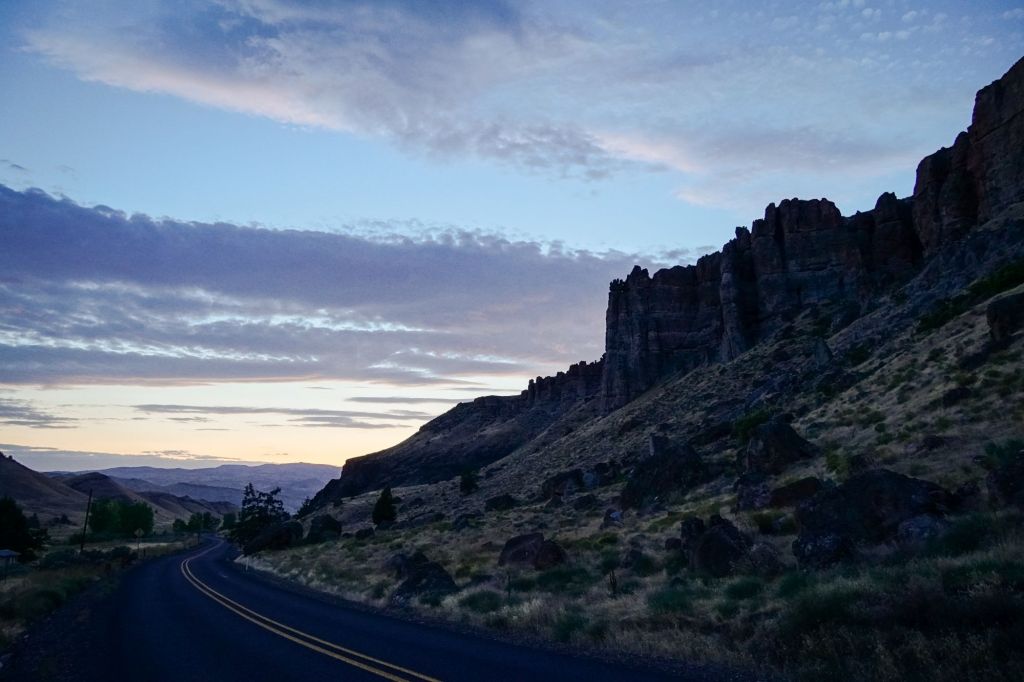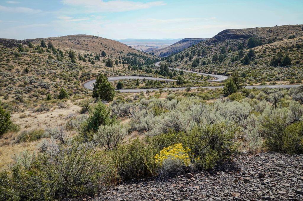 By the time I reached Maupin on the Eastern side of Mt. hood, about two and a half hours into my drive, I was getting pretty antsy, not just because I have never been able to sit comfortably for long periods of time, but because the tall trees were behind and the views were opening up. Coming over the mountain pass the sky had looked questionable, hazy with what looked like smoke in the air, and so I had wondered how clear the views would be. But by the time I reached Bakeoven road and begin to climb again onto the Eastern plains the haze begin to lift and my hopes for amazing views was starting to be realized.
