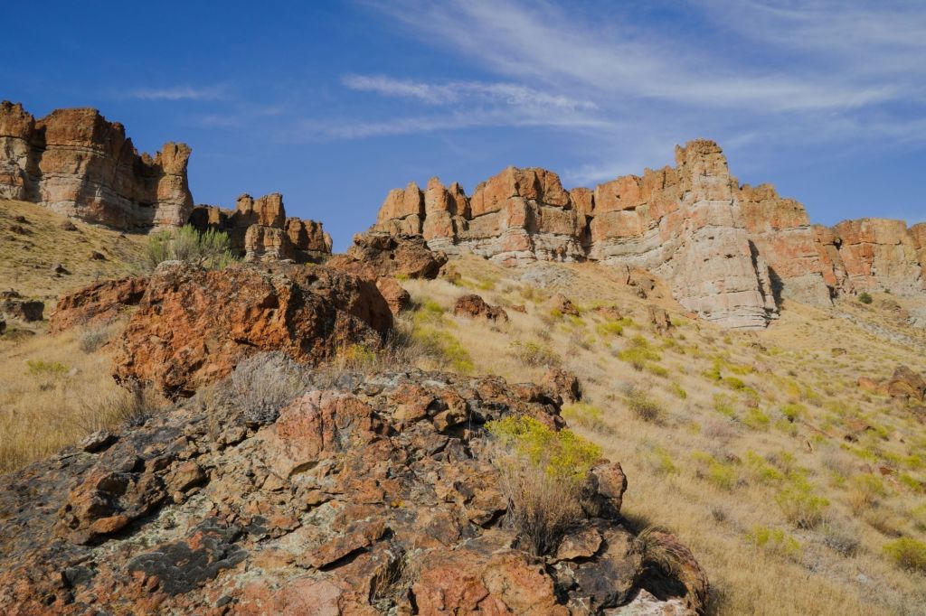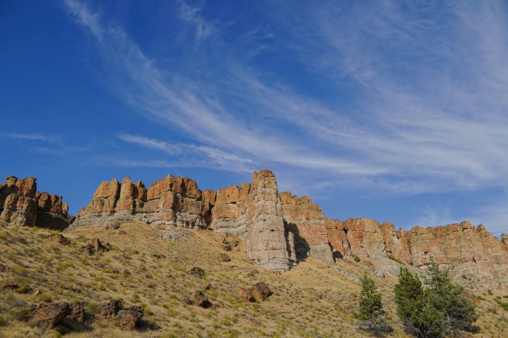 About 20 minutes later I arrived at the John Day National Monument – Clarno Unit, the beginning place of my adventure on foot. It was just as impressive as I had recalled, and before even hitting the trail I had to stop and take in the beauty of the rocks and sky just from the roadside.