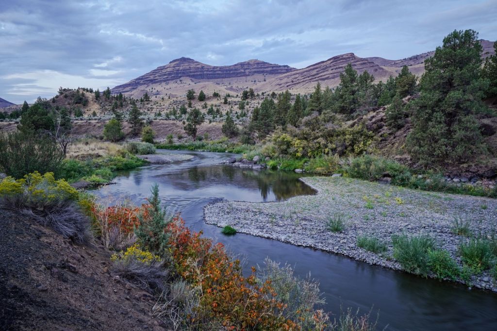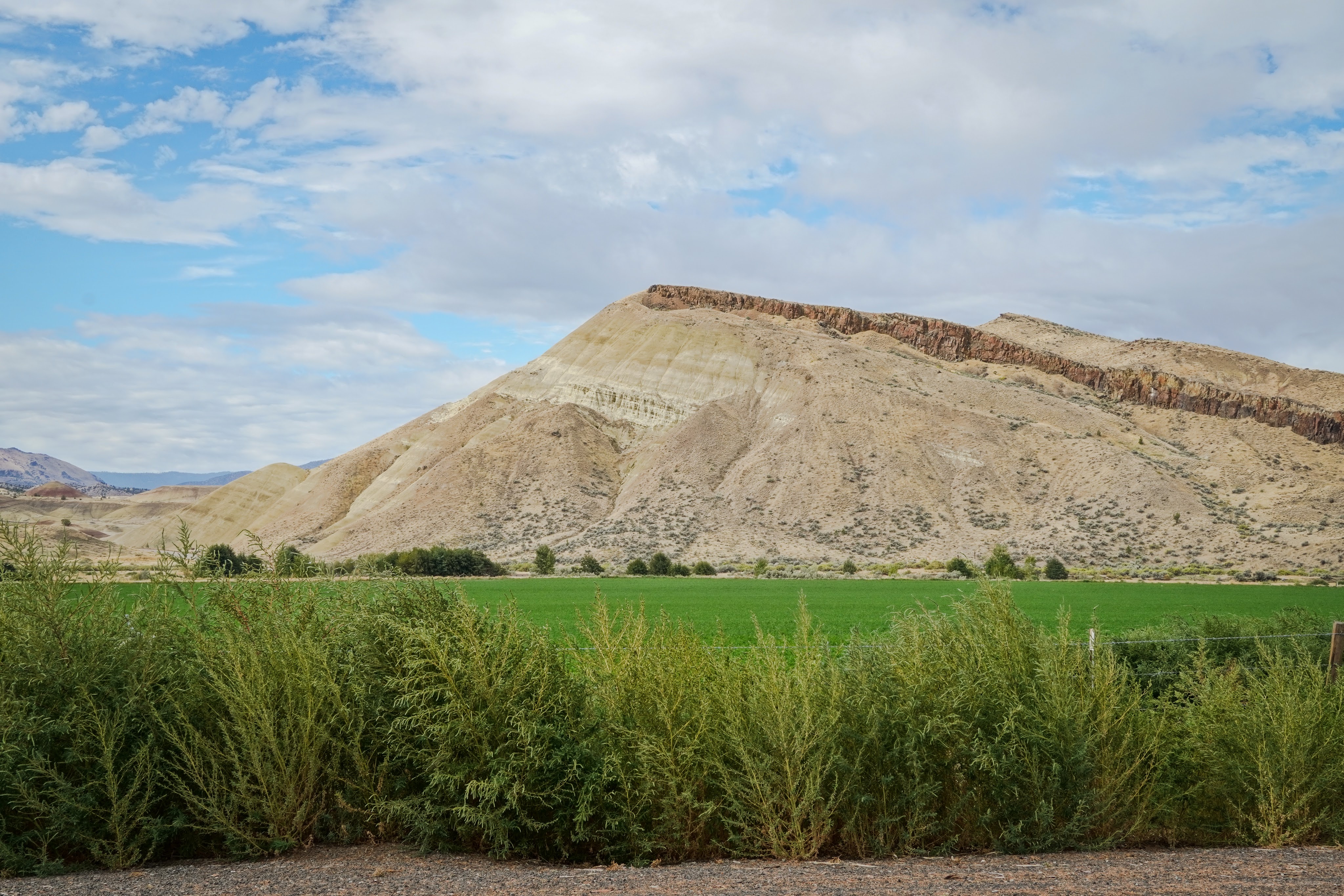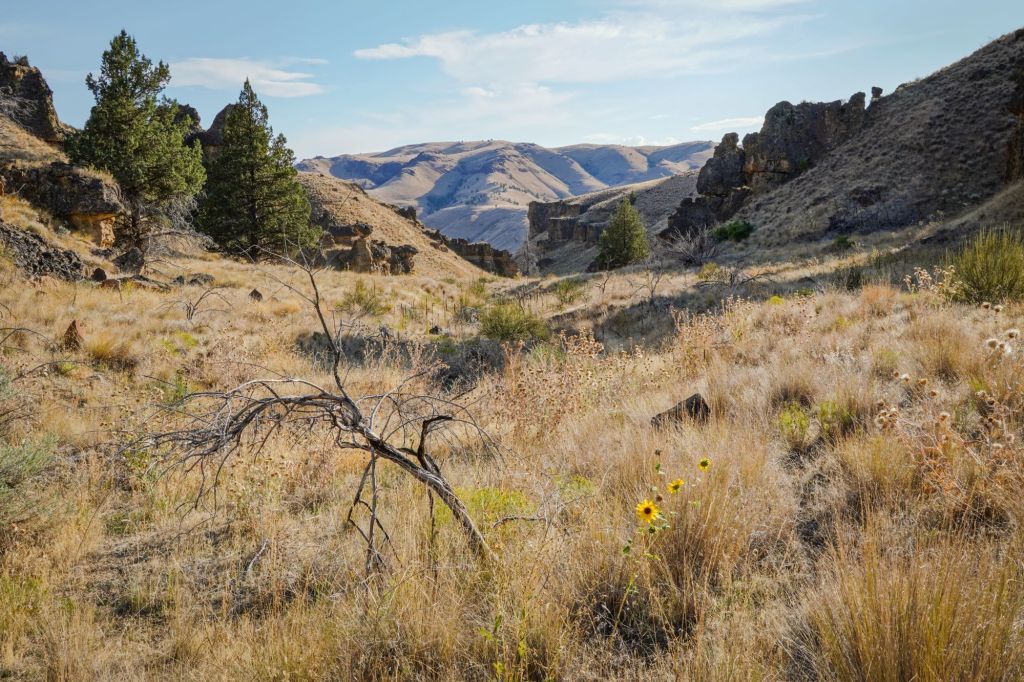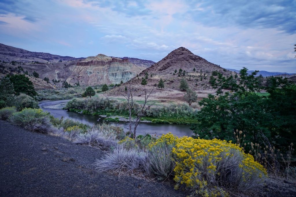 Near Sheep Rock there is a visitor center and I stopped there to look at the trail maps and other notable things that I should keep an eye out for. This is where I found a flyer that informed me I was traveling along a designated byway route named “Journey Through Time”. The reasons for this obviously being that the area contains a large amount of fossils and remnants of rock formations that have been around for a very long time. But it hit me that that title might also perfectly describe my own experience, traveling through these places, and specifically as I watched the weather change, the slowly deteriorating old structures and farm equipment, and the local summertime flowers fade.
