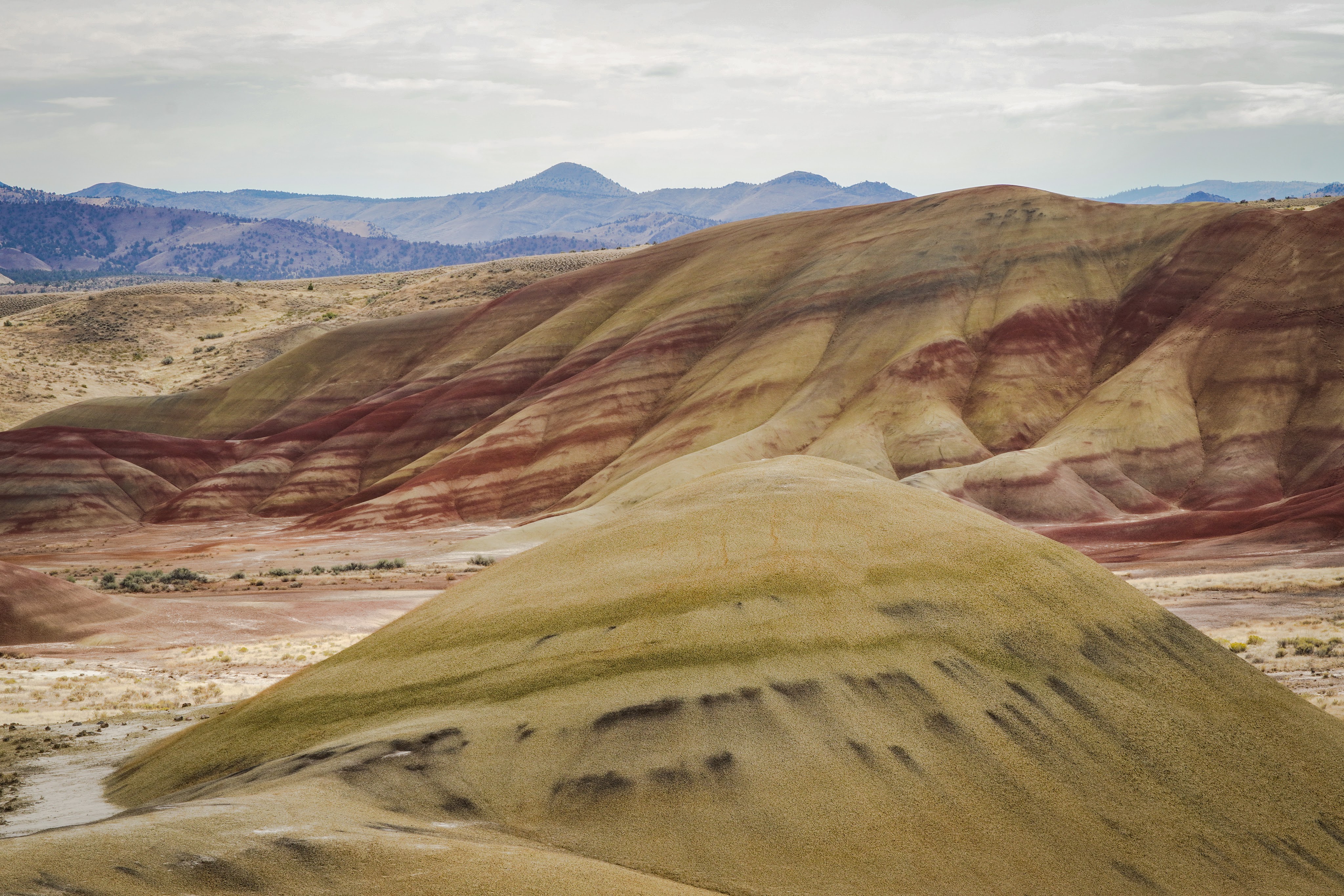 I only had a couple more hours to explore before I needed to head West. There was a family gathering, at my sister’s place and I didn’t want to miss it.  With the remainder of my time I thought I should check out the Painted Hills. Each time I had been there in the past was during sunset time. No doubt it would look different during the middle of the day, and perhaps the clouds would be kind enough to open up once more for me.