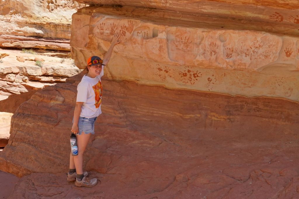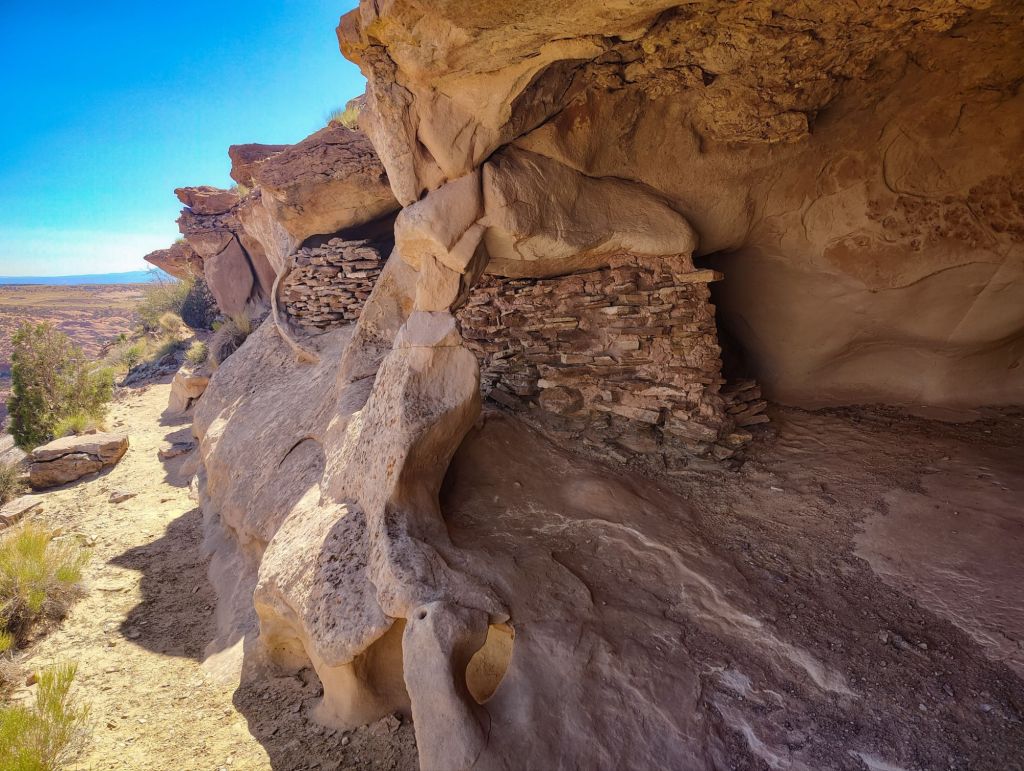 The view from the top, looking at the canyons below was breathtaking! But even more spectacular was what Olivia and I discovered, as we explored an off-trail ledge, where we found some ancient adobes and store houses up under the cliff edges. Created first by natural erosion, then inhabited by natives and made into their dwellings,  they offered serene solitude and magnificent views, that blended naturally into the landscape.