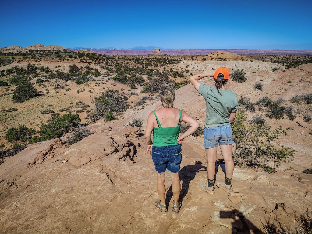 Olivia and I were eager to explore into the hot red rocks. Mary and Sarah not so much. Never-the-less, we convinced Mary to join us on our first hike while Sarah enjoyed some R&R with her big dog. It was late afternoon, the hottest point of the day, but we figured we could manage a 3 miler before dinner. Olivia scrambled up the trail with Mary and I moving at a more relaxed pace.