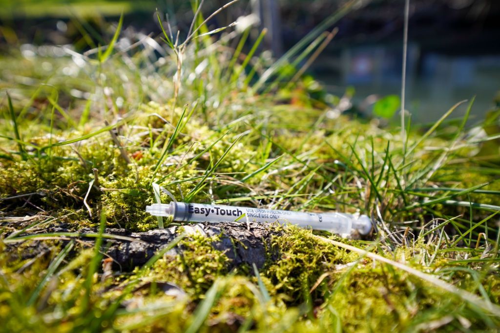When I turned to go back up onto the path I noticed something else, less inspiring, lying in the grass.  A used syringe; the evidence of some broken soul’s escape from reality.  I wondered if I should pick it up, to protect someone who might try reusing it.  But then decided that at least for today I wasn’t there to change the environment, or the people who exist there, but just to observe,… and hopefully learn.