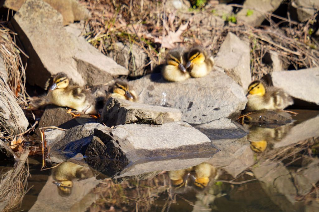 At first I couldn’t see the baby ducklings or their mother because they were camouflaged so well in the rocks. I wondered how many other passers by missed them, just sitting there at the water’s edge, but in plain sight.