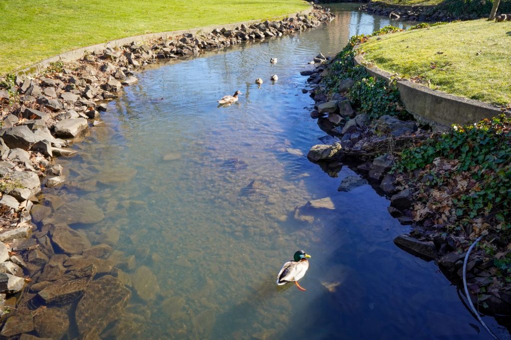 As the creek meandered into a more open area, I immediately noticed a host of mallard ducks happily swimming around and bathing themselves.  For me, the mood of the park had instantly changed.